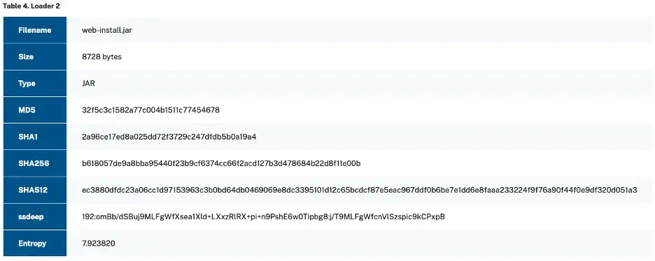 - Loader 2 contains and loads WebAndroidAppInstaller.class at runtime.