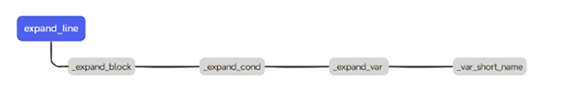 The first line expand_line accepts “login_invocation” as a parameter. And, after a lot of hoops, it arrives at the function _var_short_name.