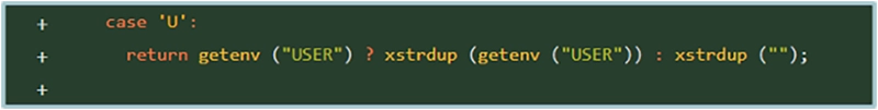 A short examination of the line reveals the purpose of the “%U” in the “command-line” string. The purpose is to replace the %U placeholder with the value of an environment variable named USER. This specific environment variable can be controlled by the user through the Telnet protocol.